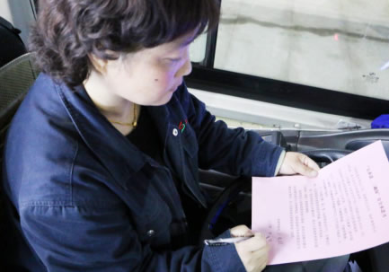 4月19日,上饶公交25路驾驶员刘素珍签订“五承诺、三确保”安全承诺书