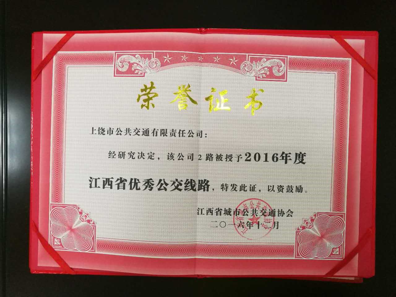 荣誉 | 上饶公交2路线被评为2016年江西省优秀公交线路